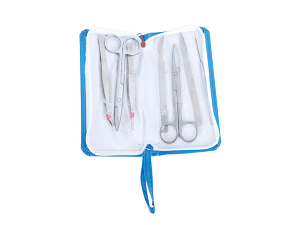 规格型号:不锈钢材料,7件(大、小剪刀,大、小镊子,解剖刀,解剖针,弯头镊)